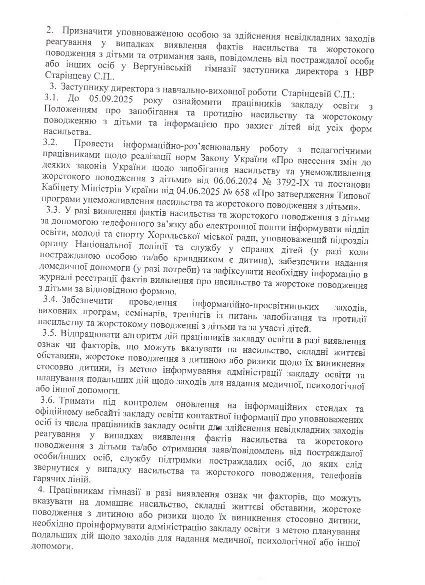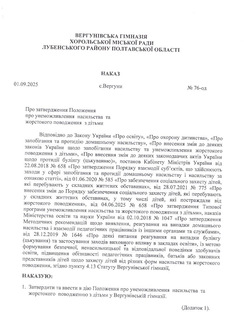 Наказ про затвердження положення про унеможливлення насильства та жорстокого поводження з дітьми